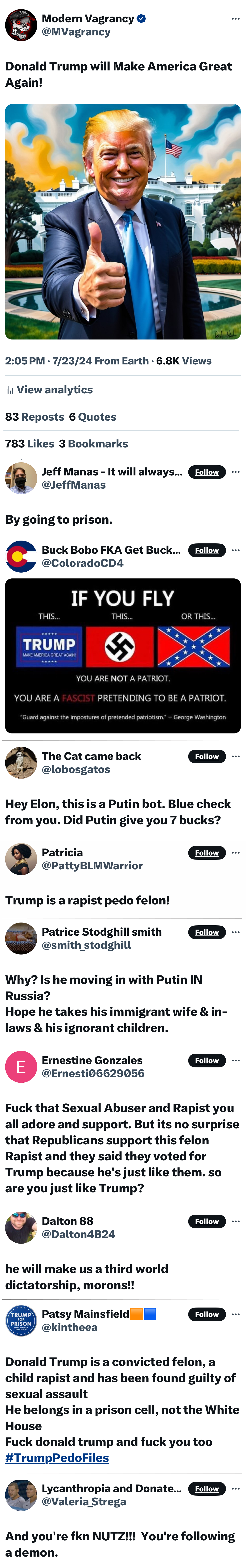 I recently did an experiment on "X” (Twitter to fulfill the obligatory explanation) where I posted a simple statement, “Donald Trump will Make America Great Again!” Just an innocent supportive post, no different than the thousands upon thousands of “Kamala Harris for President!” posts on the platform, some independently posted, many financed by PACs.